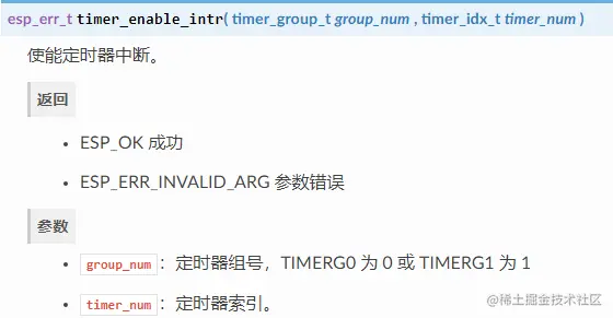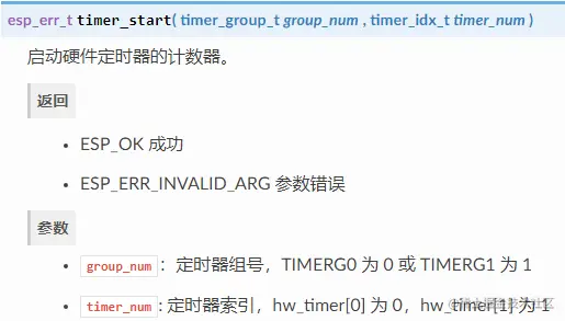 以下硬件定时器接口位于 driver/include/driver/timer.h。