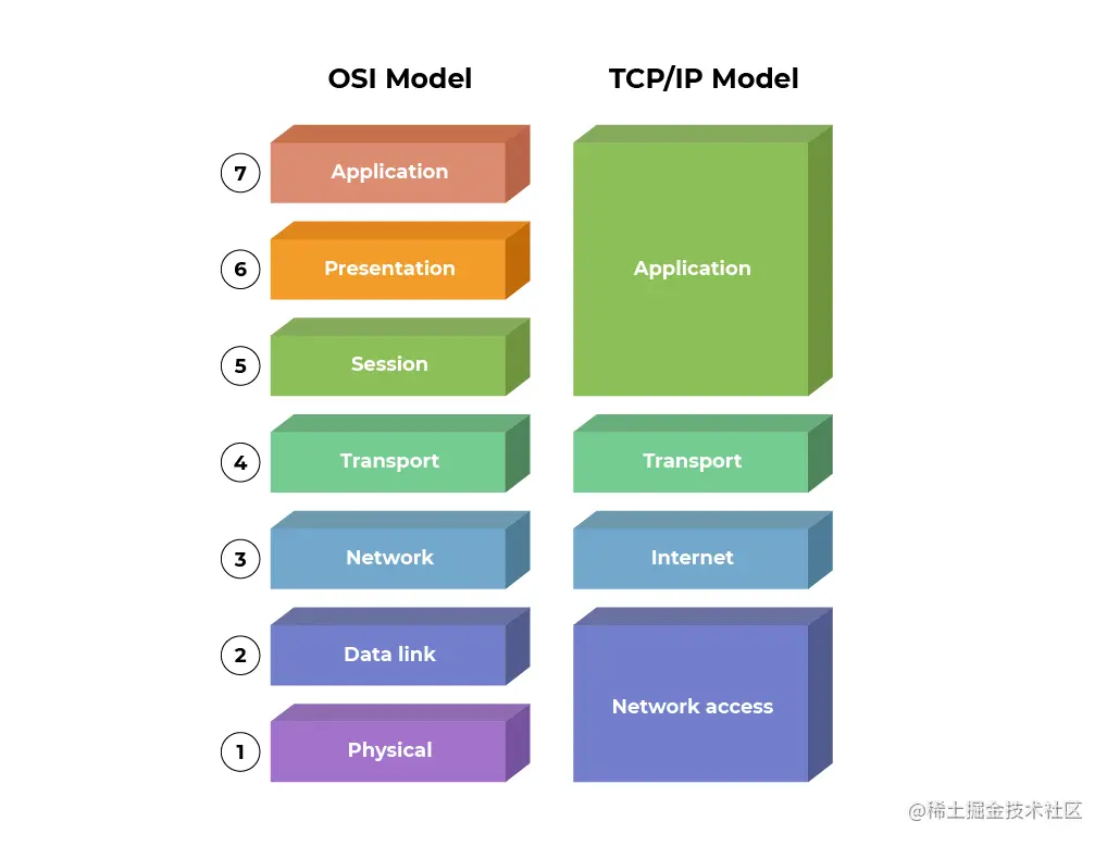 OSI 模型旨在通过将通信过程划分为更小和更简单的组件来描述通信系统的功能,TCP/IP 模型是 OSI 模型的简明版本,与OSI七层模型不同,TCP/IP 模型只有四层。