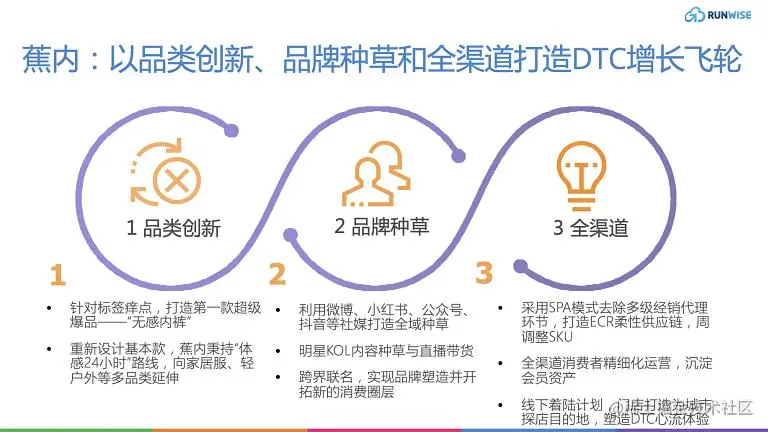 从线上到线下全渠道发力,根据大数据打造ECR柔性供应链,精确调整周SKU,布局线下旗舰店加强品牌DTC用户体验。