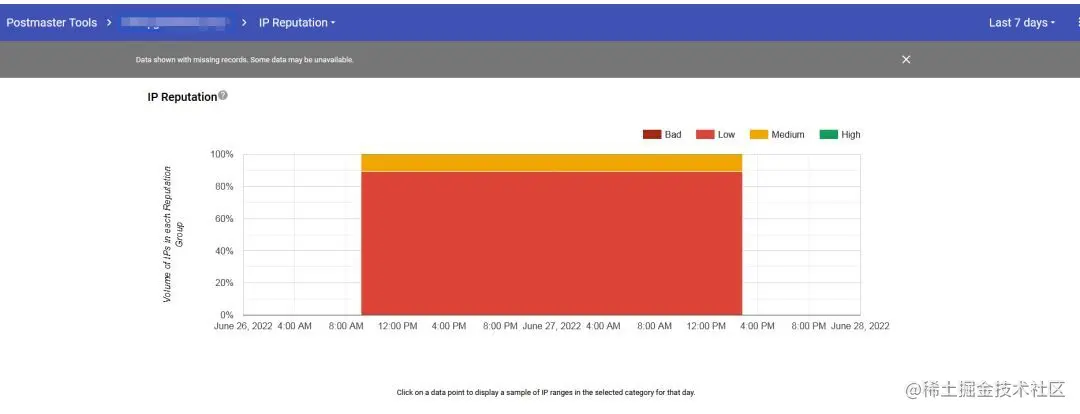 Google 向发件人提供他们的 Postmaster 工具,允许企业跟踪发送到 Gmail 的邮件数据。Postmaster 提供的有用数据包括 IP 信誉检查、域信誉检查、Gmail 递送错误等。