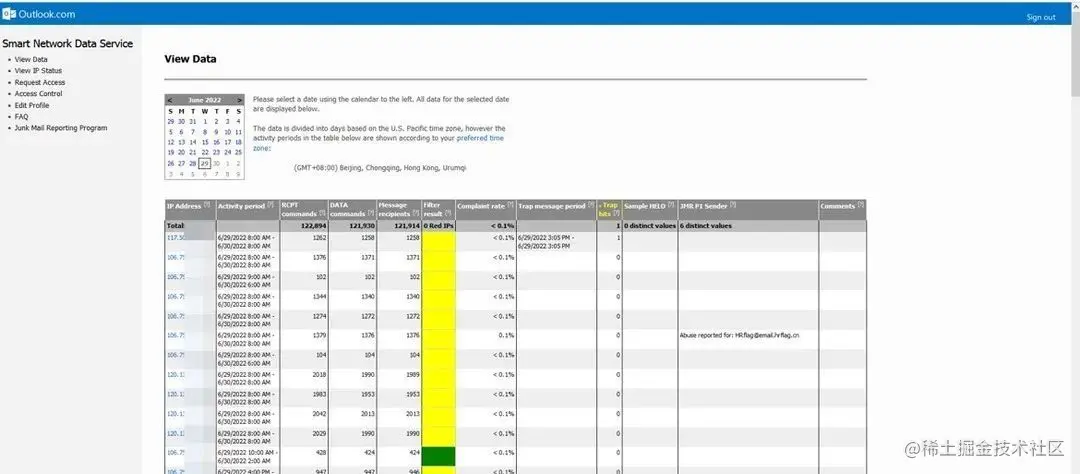 - Microsoft 提供了一项名为 Smart Network Data Services (SDNS) 的服务。SNDS 向企业提供发送到微软系邮箱的电子邮件数据反馈,例如发送 IP 的信誉、发送到陷进邮箱的量,以及企业的垃圾邮件投诉率。
