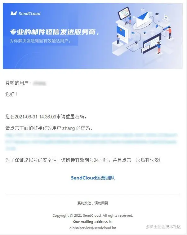 触发-验证类邮件(注册确认、密码重置、交易确认等)使用 service@mail.example.com 发送到1个 IP;