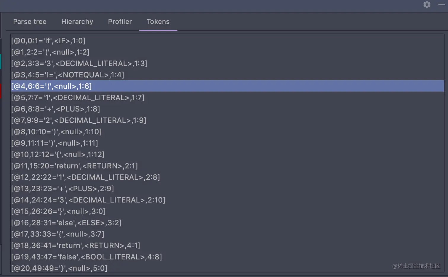 Antlr 会自动将我们的表达式解析为 token,遍历 token 时还能拿到该 token 所在的代码行数、位置等信息,在编译期间做语法检查非常有用。