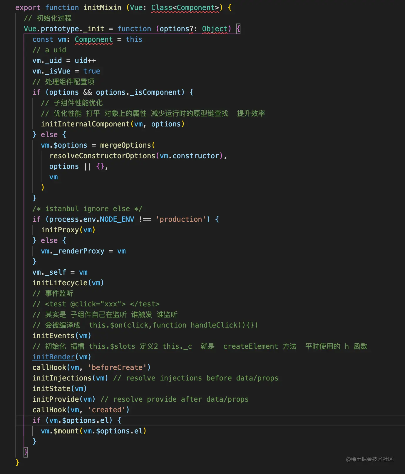 - 初始化每个子组件时做了一些性能优化,将组件配置对象上的一些深层次属性放到 vm.$options 选项中,以提高代码的执行效率