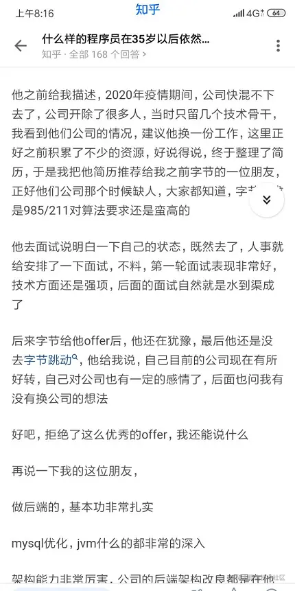 之前有看到过一篇这样的帖子:什么样的程序员在35岁以后依然被公司抢着要?