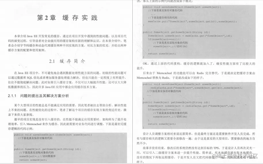 本章以Java EE应用遇到的性能问题作为话题,引导读者了解缓存技术的重要性。在讲解一个实际项目缓存的代码变迁过程中,自然而然地列举了对现有缓存方案的改进:业务代码与缓存框架分离:具体缓存实现的切换不影响业务开发;支持XML配置等。本章介绍了两种缓存架构:字节码缓存方案和动态代理缓存方案,并对比了两者的优缺点。希望读者通过阅读本章内容,能够对开发企业级应用有新的心得体会。