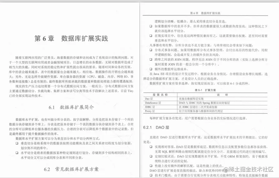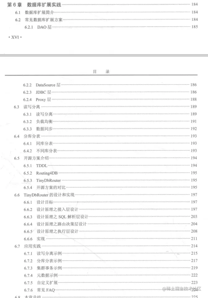 本章侧重介绍数据库水平扩展方案。首先从互联网的发展所导致的业务应用压力日益增加,从而让读者认识到数据库水平扩展方案对Java EE企业级应用是非常合理的需求。论证了水平扩展的合理性之后,列举了常见的扩展层次: DAO层、DataSource 层、JDBC层和Proxy层,重点讲解了Tiny分库分表的技术架构和设计思路,并讲解了分库分表、读写分离和集群事务的处理,还与开源软件Routing4DB 做了详细对比。最后通过具体示例.演示数据库水平扩展的配置和增删改查的结果。