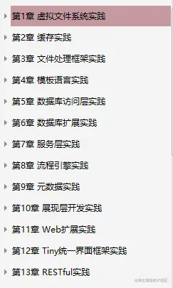 本书共13章。内容主要包括虚拟文件系统实践、缓存实践、文件处理框架实践、模板语言实践、数据库访问层实践、数据库扩展实践、服务层实践、流程引擎实践、元数据实践、展现层开发实践、Web扩展实践、Tiny统一界面框架实践和RESTful实践。附录中给出了相关学习资源和配置运行指南。