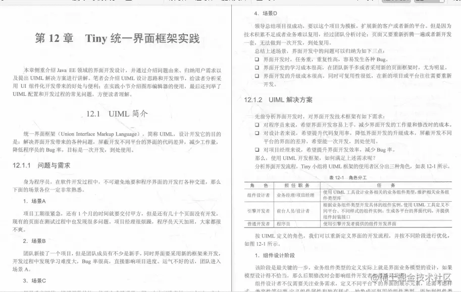 本章重点介绍了Java EE领域的界面开发设计,并通过介绍问题由来,归纳用户需求,提出UIML解决方案。本章的侧重点是介绍UIML设计思路和开发细节,让读者了解UI组件化开发带来的好处与便利。在实践小节中介绍了图形编辑器的使用,最后还列举了UIML配置开发示例,归纳和总结了开发过程中的常见问题。