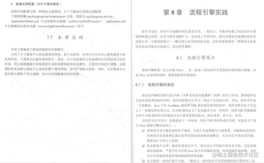 本章介绍了面向对象编程的不足,引入了面向组件编程的概念。流程引擎框架(后文亦称之为Flow)是一款基于面向组件开发的组件流程执行框架。目前Flow支持两种流程:逻辑流程和页面流程。在设计部分,读者可以通过组件设计、流程管理、流程配置和流程执行了解流程引擎的强大。在实践部分笔者介绍了如何通过组件化开发算术表达式的流程。
