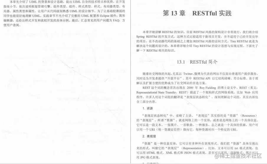 本章讲解了业界流行的RESTful的背景和开发方式。首先介绍了Spring RESTful的开发方式,这种方式比较适用于新项目开发,而不适用于已经开发完毕的项目。然后讲解了Tiny RESTful如何解决这个问题。本章详细介绍了Tiny RESTful的设计思想与实现过程,最后的Web层示例演示了RESTful风格配置Web映射。