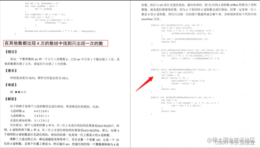 - 在其他数都出现k次的数组中找到只出现一次的数