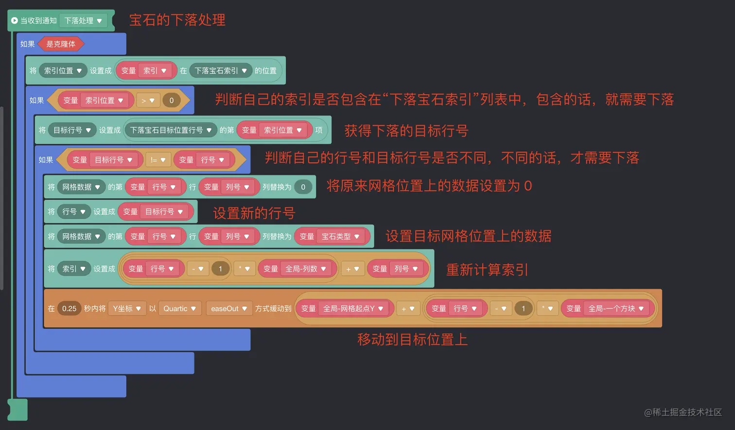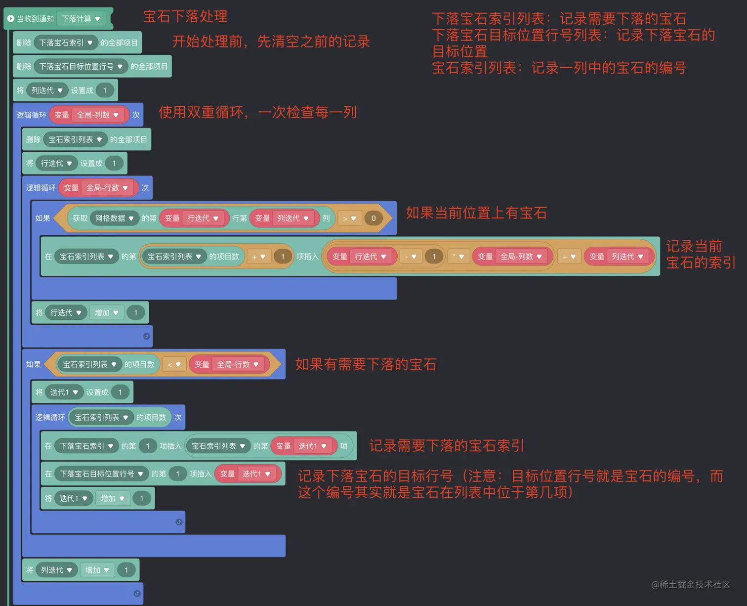 发现规律了吗?宝石的编号就是它要下落到的位置的行号。