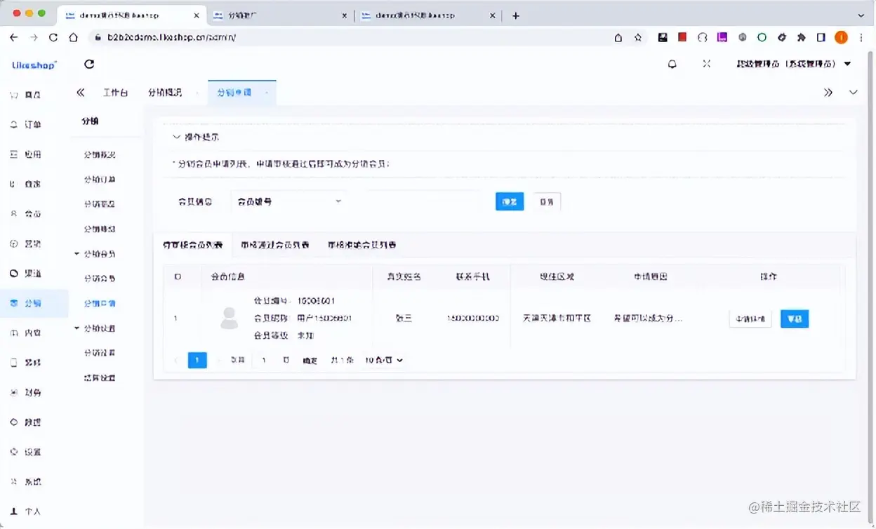 本章节讲解平台端分销申请的设计思路,截图如下: