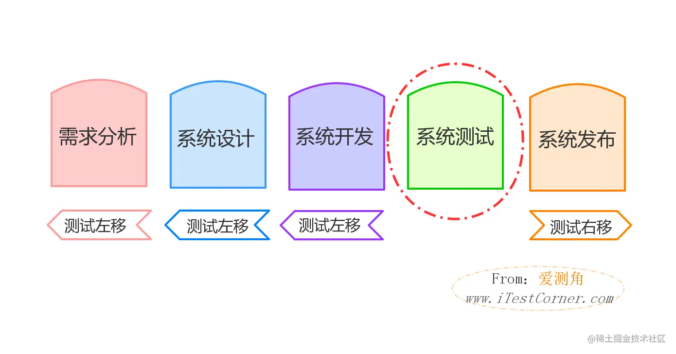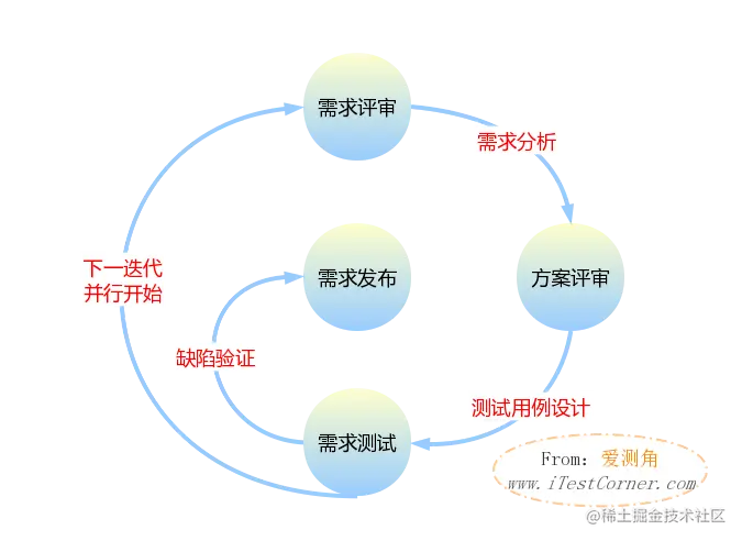 传统的测试文档一般包括:测试计划、测试用例、测试缺陷和测试报告。 测试计划文档整理了测试的排期,测试用例文档整理了具体的测试点,测试缺陷文档记录了测试过程的Bug,测试报告整理了测试结果。如图2-1,我们可以发现,整理这些文档其实还是局限于系统测试这个节点,我们的关注点还是停留在测试执行这个循环中。或许,我们可以尝试跳出这个传统思维,从整个软件生命周期来关注如何整理测试文档。