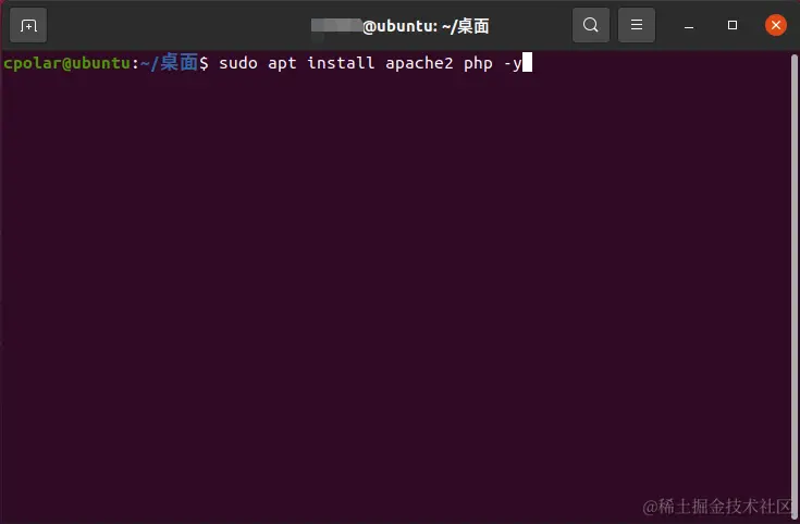 接着在命令行中输入命令,安装apache2