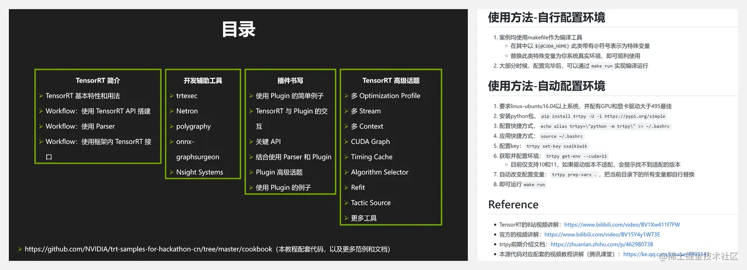 这是一个学习cuda、tensorrt的源代码案例项目,包含大量案例,覆盖从基础的cuda驱动api、运行时api 到 tensorrt 的基础入门、tensorr t的高级进阶、模型的导出、模型的前后处理、多线程的封装等等,帮助进一步掌握 tensorRT。