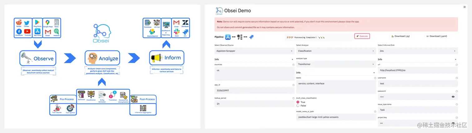 🚧 『Obsei』面向文本分析的低代码自动化工具