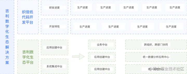 对于吉利来说,一个具备灵活性、可拓展性的高性价比工具是转型的重点。在一番挑选后,吉利集团选择了用织信Informat低代码平台自主搭建应用创建中台和系统集成中台,把核心业务的数字化搭建在管理系统中,赋能集团统一的业务、流程和数据中台,构建集团数字化生态,实现了数字化转型。
