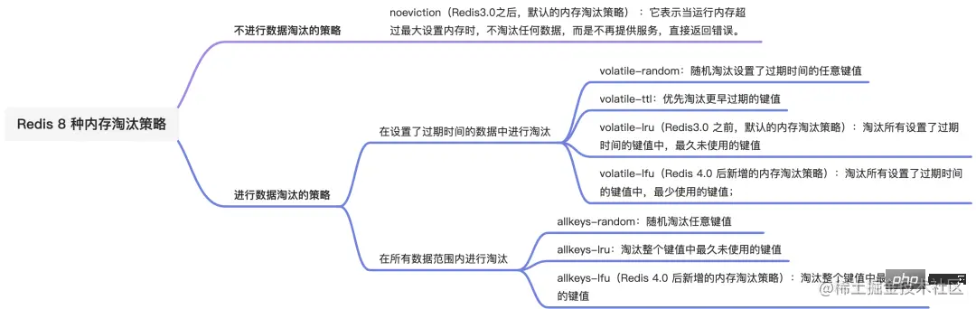 针对「进行数据淘汰」这一类策略,又可以细分为「在设置了过期时间的数据中进行淘汰」和「在所有数据范围内进行淘汰」这两类策略。