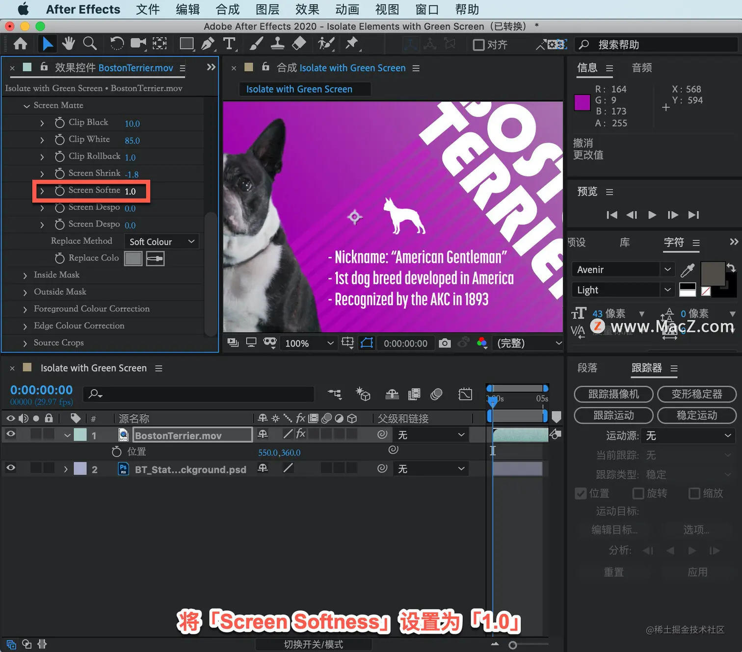 屏幕柔软度会在哑光边缘增加一点柔软度,将「Screen Softness」设置为「1.0」。