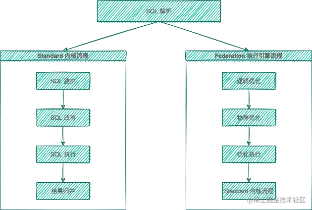 - SQL 改写(由我内核中的改写引擎完成):将 面向逻辑表 SQL 改写为在真实数据库中可以正确执行的语句(逻辑 SQL 到物理 SQL 的映射)。