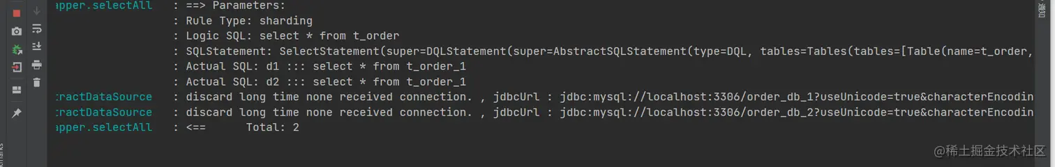 其中 PreciseShardingAlgorithm 是必选的,用于处理 = 和 IN 的分片。RangeShardingAlgorithm 是可选的,用于处理BETWEEN AND, >, <,>=,<= 条件分片,如果不配置RangeShardingAlgorithm,SQL中的条件等将按照全库路由处理。