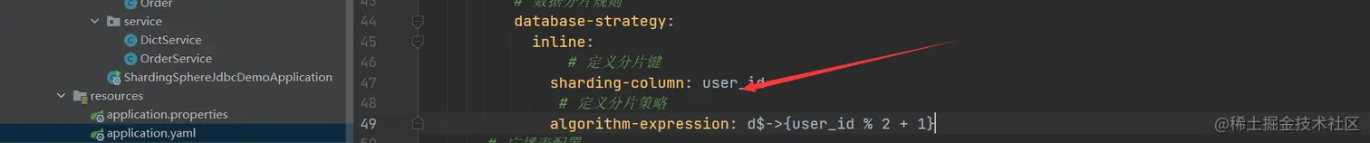 行表达式分片策略,支持对 SQL语句中的 = 和 IN 的分片操作,但只支持单分片键。这种策略通常用于简单的分片,不需要自定义分片算法,可以直接在配置文件中接着写规则。