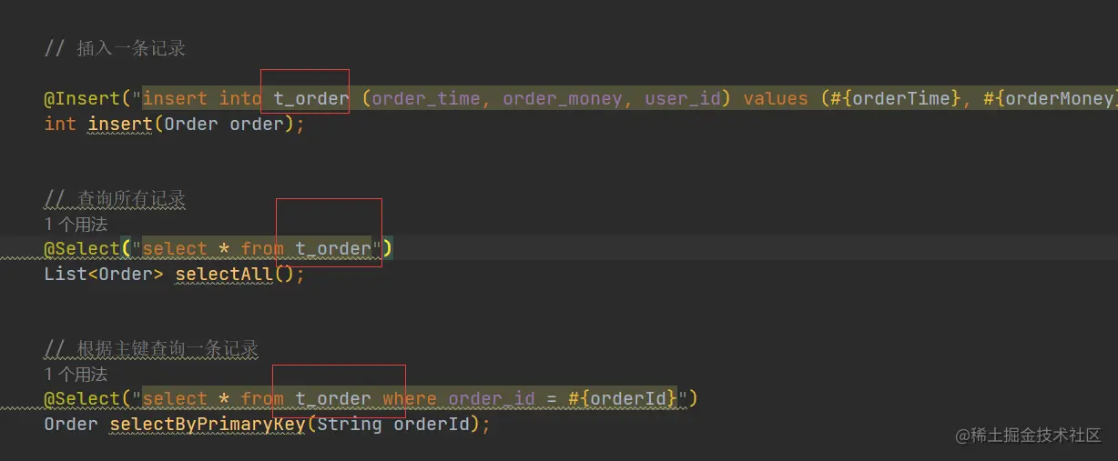 t_order_$->{t_order_id % 4} 代表 t_order 对其字段 t_order_id取模,拆分成4张表,而表名分别是t_order_0 到 t_order_3。