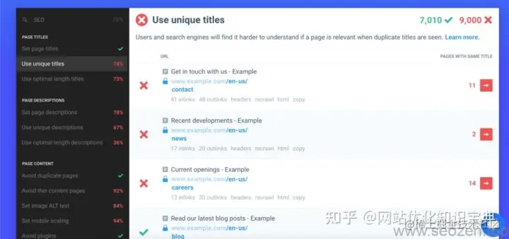 做SEO优化的对TDK应该不陌生,但是SEO小也现在只使用了TD,已经不再使用Keyword的这个标签在网站头部,因为谷歌已经明确不使用Keyword作为网站排名因素,因为这个标签已经被各位站长给用烂了,所以已经不再具备什么参考价值,这里我们需要注意T和D标签,T标签就是Title,D标签是Description,这里最重要的就是T标签,每个网页都需要有它独立的标题,要区别网站上所有其他网页,这里推荐一个工具,SEO小也经常用Chrome上的一款SEO插件Checkbot来审查网站的TD标签是否符合要求。