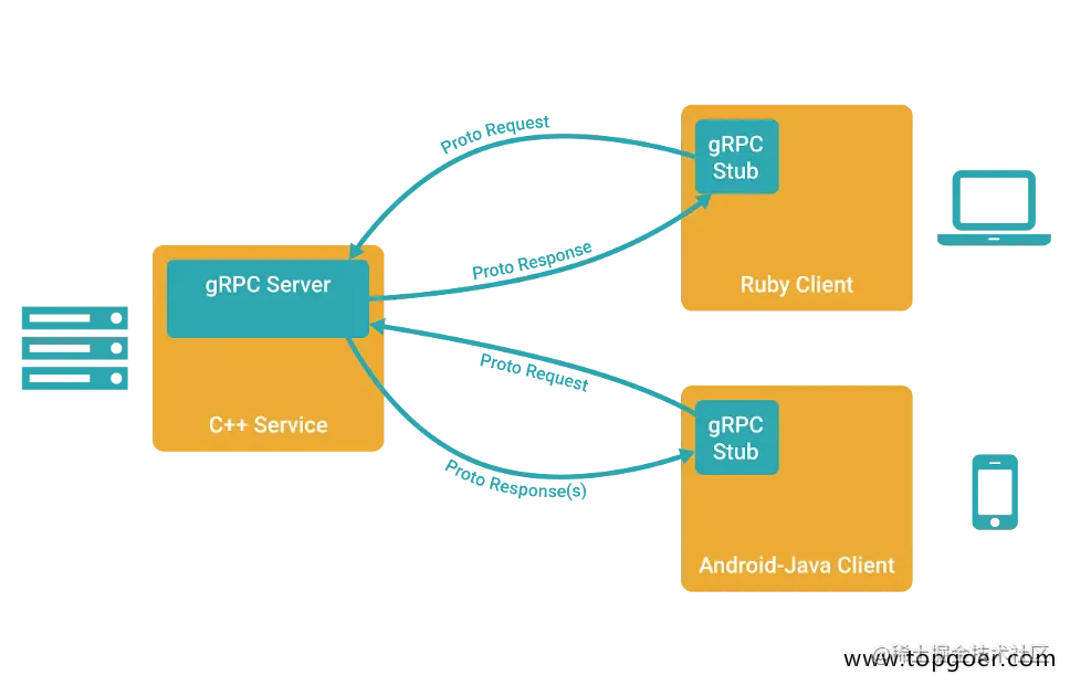 - gRPC 使用协议缓冲区数据格式,而不是通常在 REST API 中使用的标准 JSON 数据格式
