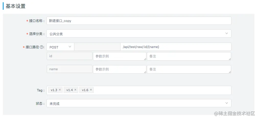 - Tag:用于标识接口tag信息(v1.3.23+),在接口list页可以根据tag过滤接口