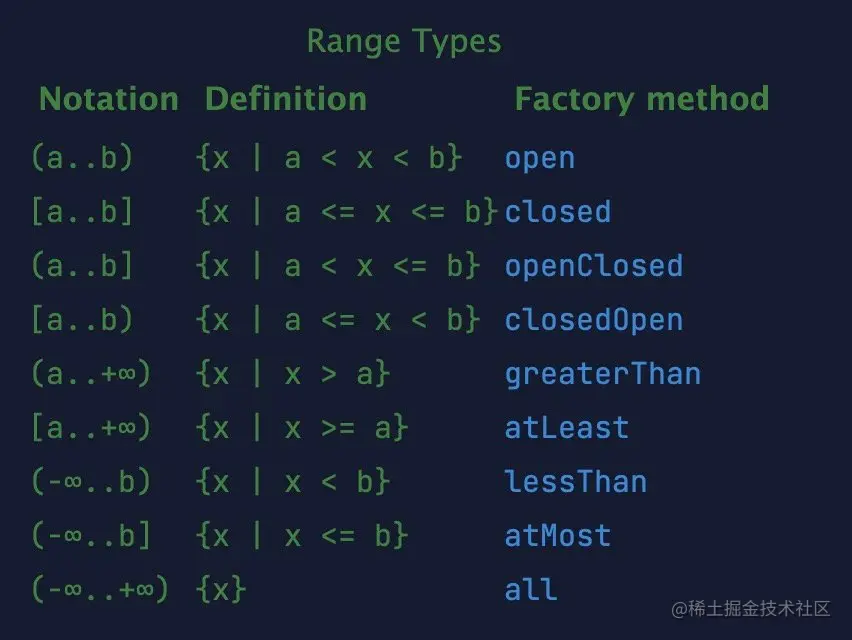 类,其实顾名思义就是表达区间范围,我们看一下它的 type 就明白了: