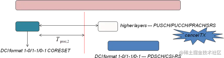 对于TDD,higher layers配置的PUSCH/PUCCH/PRACH/SRS发送符号在Flexible集合内,如果接收到DCI format 1-0/1-1/0-1指示的PDSCH/CSI-RS接收,在发送符号满足时间间隔要求的前提下,不发送PUSCH/PUCCH/PRACH/SRS。