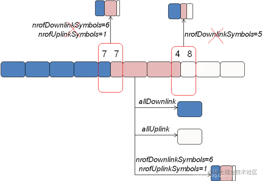 tdd-UL-DL-ConfigurationCommon**和tdd-UL-DL-ConfigurationDedicated配置确定后的上下行配置后,上下行符号的使用比较明确。