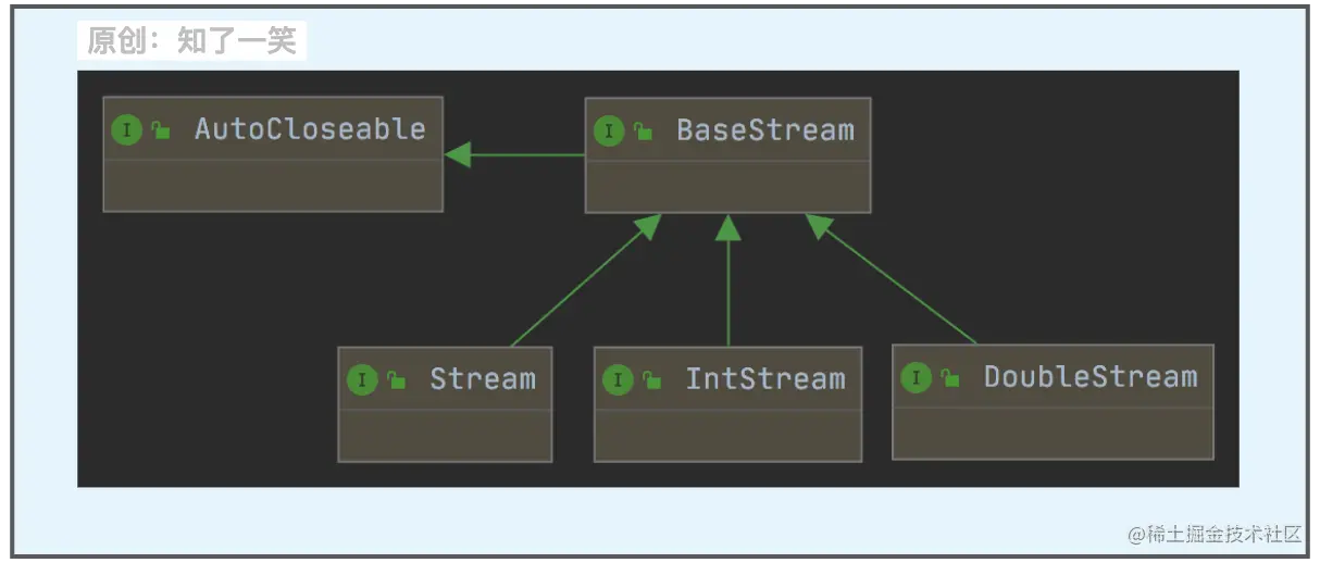 - Stream:核心接口,声明了流操作的核心方法,其他接口为指定类型的适配;