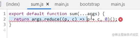 - 我们在一个js文件里面故意写错,比如下面所示,然后分别编译看情况,可以看到: