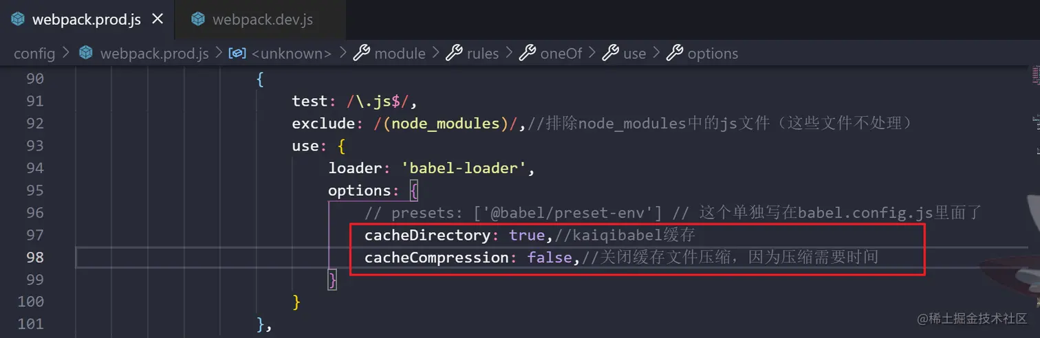 我们为什么需要cache呢?是因为每次打包时 js 文件都要经过 Eslint 检查 和 Babel 编译,速度比较慢。