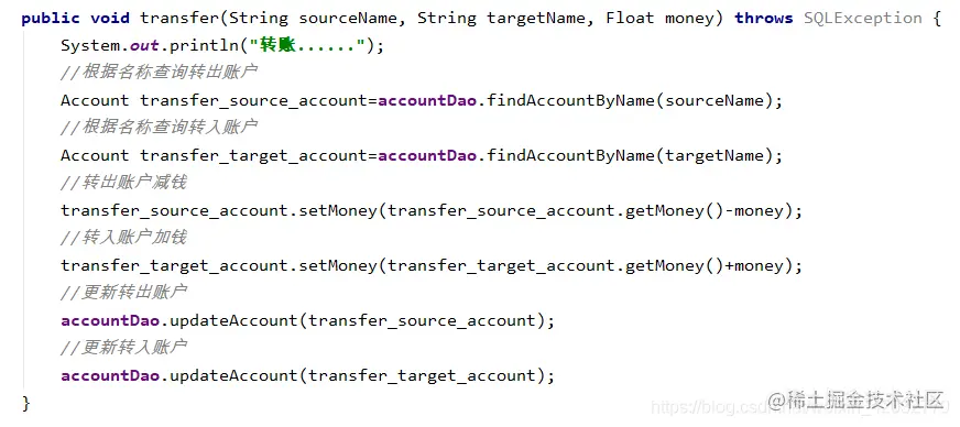 <!--property name="accountDao"需要在AccountServiceImpl里面写setAccountDao()方法-->