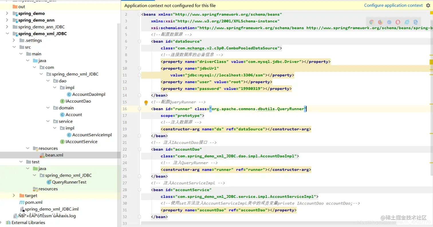 <bean id="accountDao" class="com.spring_demo.dao.impl.AccountDaoImpl">