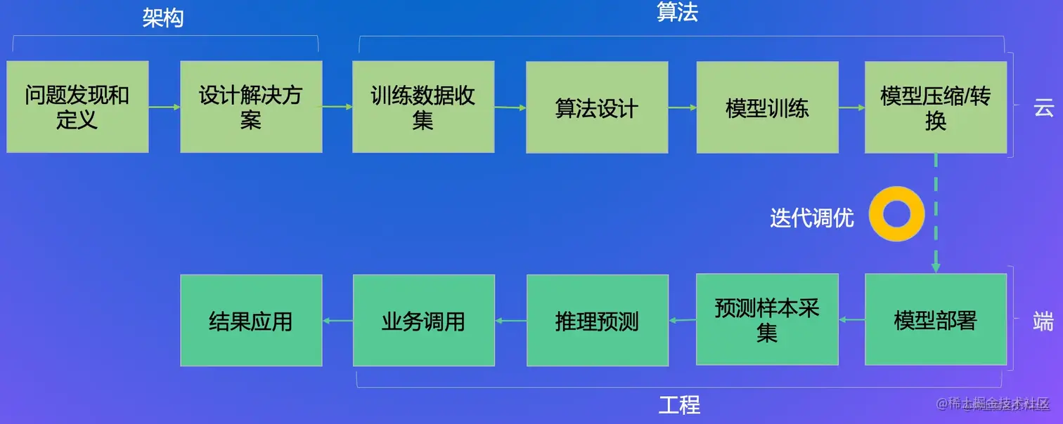 - 最后,把优化后模型部署和集成到端侧设备应用中,执行推理预测,并以进预测结果解决定义的问题。