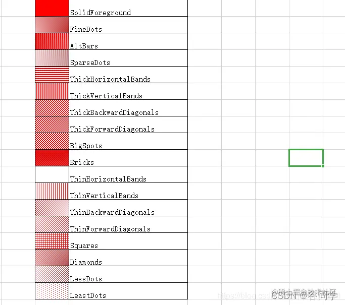 单元格填充格式编码与实际效果对应关系如图