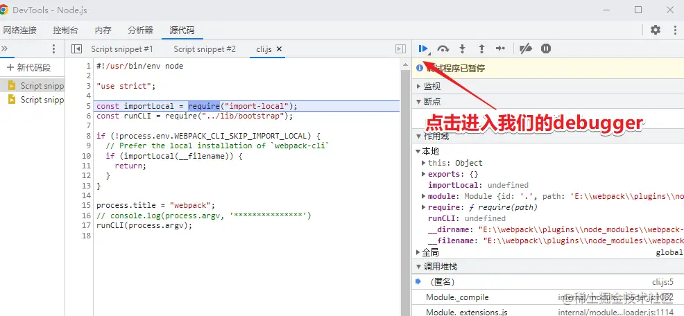 "scripts": { "debug": "node --inspect-brk ./node_modules/webpack-cli/bin/cli.js" }, -