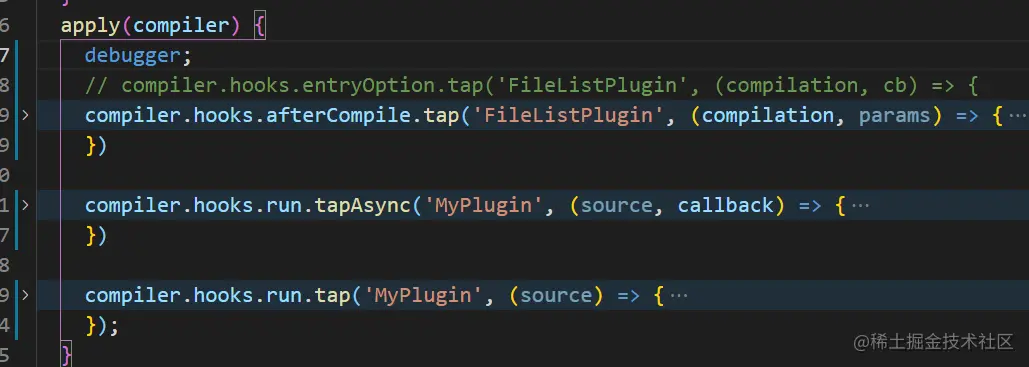 apply, 参数是compile - apply 内部就可以监听相关的参数是compile.hooks事件去做自定义的处理