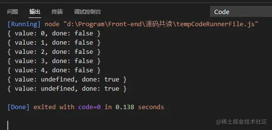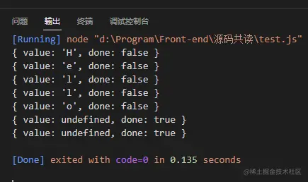 可以看到我们调用Symbol.iterator方法得到迭代器对象,调用next()方法就能遍历该字符串。同理,内置的其他具备Iterator接口的数据结构也能够通过该方法遍历。