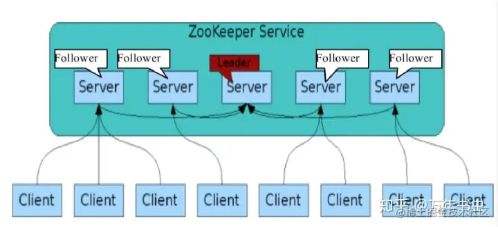 Zookeeper是一个由多个server组成的集群 一个leader,多个follower 每个server保存一份数据副本 全局数据一致 分布式读写 更新请求转发,由leader实施