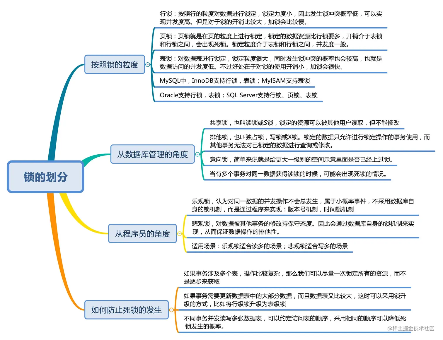 加锁是为了保证数据的一致性,MySQL 的锁从不同的角度有多种划分,总的来说如下图所示: