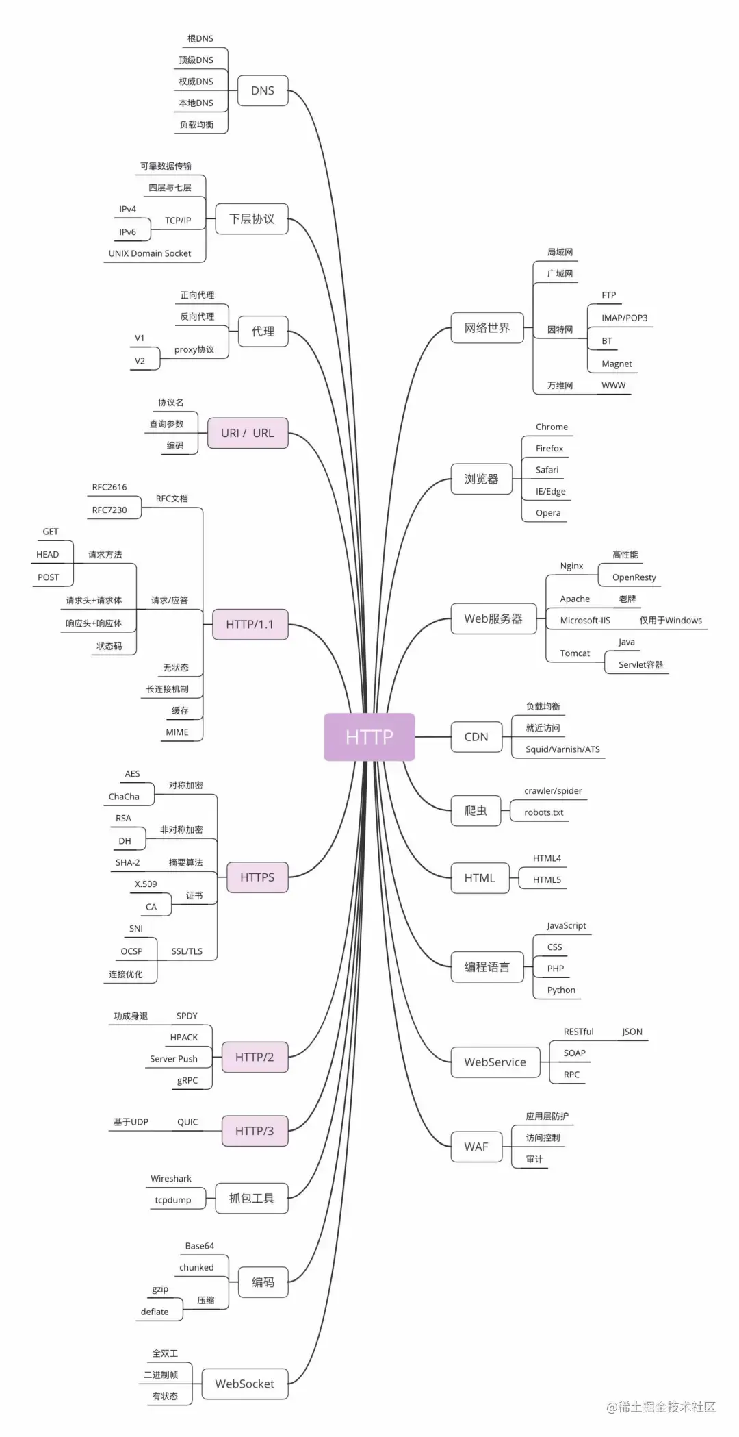由于 HTTP 应用得非常广泛,几乎涉及到所有的领域。所以阿里大牛的内容不只讲协议本身,还有与它相关的 TCP/IP、DNS、SSL/TLS、Web Server 等都会讲到,而且会把它们打通串联在一起,形成知识链,让你知道它们之间是怎么联系、怎么运行的。