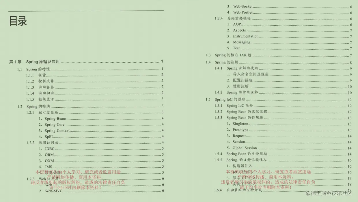 第1章讲解Spring原理及应用,涉及Spring loC原理、Spring AOP原理、Spring MVC原理、事务、MyBatis缓存等内容;