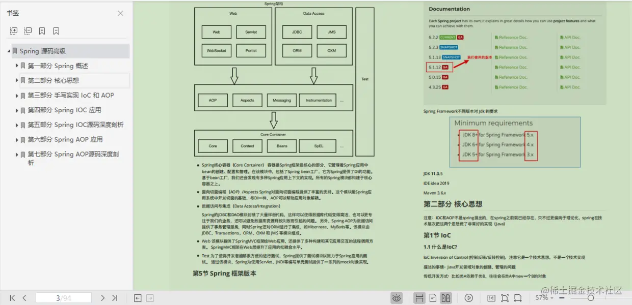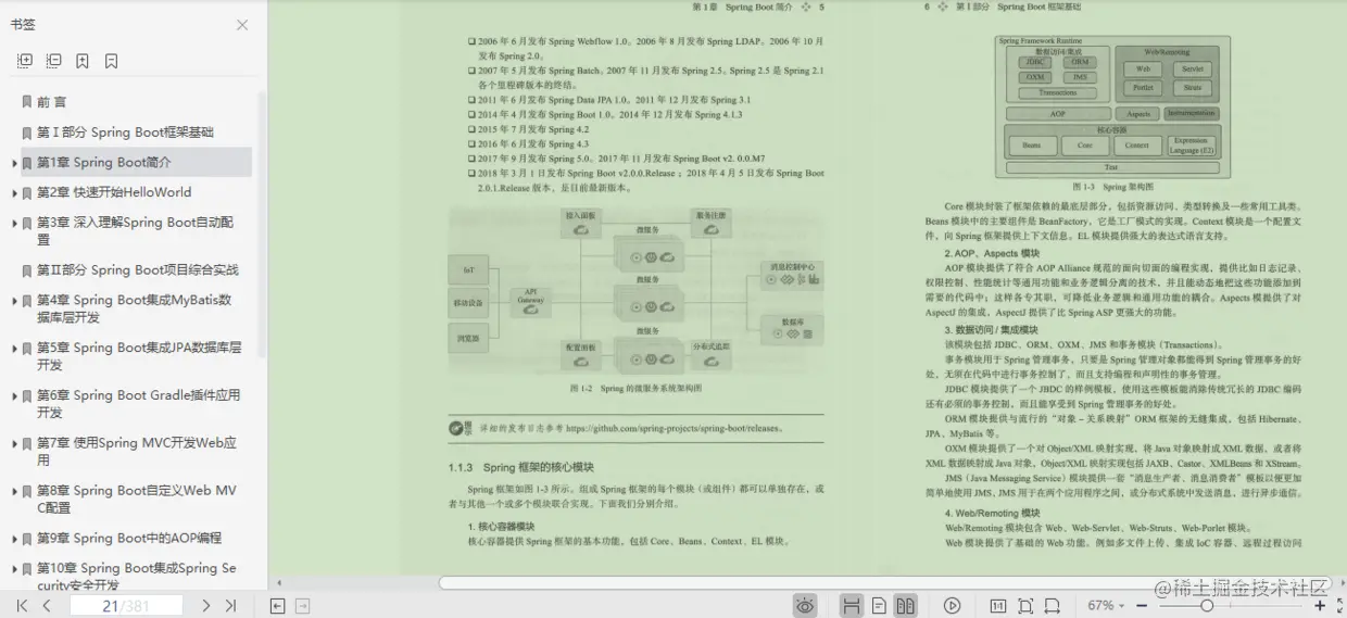 更精彩的是,后面用了很大的篇幅来解析 Spring IoC 和 Spring AOP 的基础、高级特性、源码深度剖析,非常值得一看。